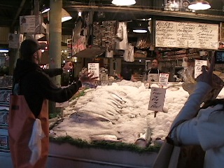 ⑥ウエスト・レイク・センター ・ダウンタウンの中心に位置するショッピングモールである。ガラス張りの店 内には燦燦と太陽が降り注ぎ、モール内は明るい雰囲気。3階にはフード・コートがあり、そこで昼食。<ヌードル、鶏肉、野菜の旨煮を混ぜ合わせた一皿を注文する。値段は5ドルほど。量はたっぷり2人前のアメリカンサイズ。食べきれなーいでした。> ・同じ3階にはシアトルセンター行きのモノレール発着駅となっている。ここから90秒の乗車で終点シアトルセンターだ。(明日はこれに乗って…) ⑦スミス・タワーの粋な計らい ・35階の「チャイニーズルーム」にある、中国の西太后から贈られた立派な椅子がおいてあり、独身女性が座ると1年以内に結婚できるという伝説がある。 ・当日はあいにくウイークデイで見学不可の日であったが、黒人の管理人らしき人が、特別サービス(本来は入館料7.5ドル)無料で〝いってらっしゃい” と粋な計らいで見学。<さてその御利益は如何に・・・・1年後の楽しみデス> ⑧パイオニア・スクエアとアンダーグラウンド・ツアーについて ・19世紀に建てられたレンガや石造りの建物が保存されている。シアトル発祥の地と知られているところ。オープンエアのカフェやレストランも多く、昼間のんびりとあたりを散策する。昼食は古本屋の地階にあるレストランでそれぞれの好みにて喫食。ビーフサンドが6ドル程度だが、またしてもキングサイズが2個。1食分は”BOX”でホテルに持ち帰った。<この残り分は、〝Kb"さんにプレゼントした。彼女:中のビーフだけぺロリであった> ・アンダーグラウンド・ツアーは、1965年から始まったもの。40人程のグループとなってガイドを先頭に地下を歩き廻るのだが、カビ臭い地下は地上とは別世界。埃をかぶった瓦礫や建物の骨組みから、そこが宿屋であったとか、よろず屋などの店舗であったことが分かる。およそ100年前のこの町の様子が窺い知れる。<ガイドさんは早口でほとんど90分間、首に青筋を立てて喋りまくっていた。いやはや敬服したが、あまり理解ができず、後になって解説パンフ(日本語)でやっと様子がつかめた。おしゃべり"ガイドさん"お疲れさまーでした>・・・・左の写真に建築された年号(1854年)が見える ⑨パイク・プレイス・マーケットとStarbucks Coffee1号店など ・パイク・プレイス・マーケットは東京でいうと"アメ横"みたいな雰囲気のところ。アメ横と違う点は、ここでは近隣の農業・漁業産物を持ち寄っている点であろう。その点でいうと地方にある(地方色のある)市場ということかもしれない。 ・面白い鮮魚屋さんがあった。客が購入を決めた魚を、店員同士で掛け声をかけながら投げ渡す場面だ。このマーケットの名物とか。遊び心もあって、粋があって、客を喜ばす、微笑ましい光景であった…3日目に見学> ・スターバックスコーヒーの1号店はシアトルにある。店は小さい間口で、見慣れたグリーンのロゴマークではなく、オリジナルの茶色のマークだし、店内には金色に輝く”1号店記念レリーフ”がある。お土産には、当店オリジナルのマグカップ(残念ながら製造場所は"中国"とあった)と、最近売り出したばかりの1号店オリジナルインスタントコーヒーをGetした。 ⑩ディミトリアス・ジャズアレイの〝ディナー&ジャズピアノ演奏″を満喫 ・ディミトリアス・ジャズアレイはシアトルの「ブルー・ノート」的存在と言われている。アメリカはもちろん、世界各地で活躍するミュージシャンのライブが、食事やお酒を味わいながら楽しめるジャズ・クラブ。これまで公演したミュージシャンは、オスカーピーターソン、レイ・ブラウンなど多数。 ・我々の予約席(日本からインターネットで予約)は、ステージの横2列目。いい席ですが、前の男女2組がいささかスタイミーに。食事メニューは20から30ドル程度。魚料理とワイン2杯とした。残念ながら演奏中は撮影禁止。テーブルの片隅でビデオをちょっと回したが無理でした。 <2日目の夜になって、これまで元気なかった”Ry”さんは元気はつらつ。 お酒も手伝ってか”彼氏”の話に花が咲く。ごちそうさまでした> <次回:3日目となります> ①シアトル・タコマ国際空港(SEA通称シータック)に到着したのは、現地時間1月19日朝7時頃。空港到着後の諸審査は必要以上にしつこく、日本語通訳を通してかなり時間を要した。 約1時間後、現地ガイドさんと合流し、専用車で市内視察に向かう。 天気は曇り(前日までは雨)。雨が降らない分だけラッキーという。 ダウンタウンの中心街から車で1時間ほど。対岸から望むシアトルの街は、午前10時頃とは思えない、まるで夕暮れのような景色であった。(右写真) ③シアトル・マリナーズの本拠地、セーフコ・フィールド球場 シアトル・マリナーズは、日本人大リーガーの活躍により、日本でも知名度が上がりました。(佐々木主浩投手、イチロー外野手、城島捕手) こうした日本人大リーガーの目覚ましい活躍が、シアトルの地元フアンに